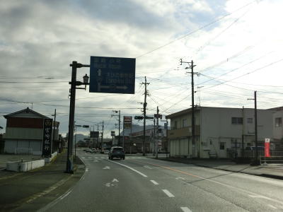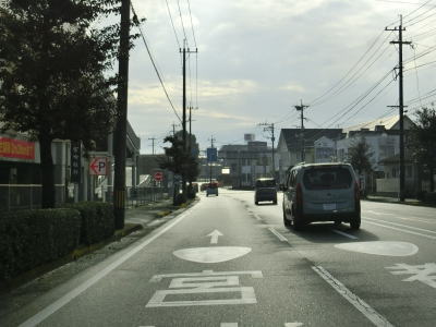 | 114.車線減少後に車線減少の警戒標識が立っている | 115.沿線には郊外型の店舗が多い | 116.金鳥居交差点 |