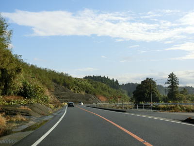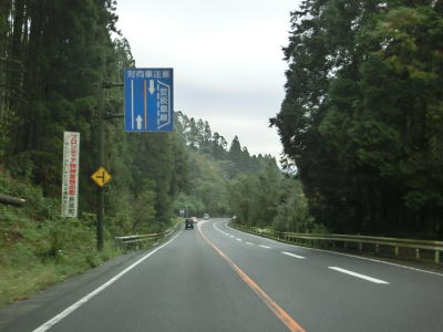 | 今別府集落で宮崎まで30kmと表記された案内標識が設置されている。R268の終点は宮崎市内の交差点だが、平成の大合併以前は高岡町だった場所のため、案内標識の高岡までの距離の方が終点に近い。緩やかな上り勾配とカーブの2車線道路を淡々と東に向かって走る。交通量はそれなりにあるが信号機付きの交差点が少ないため流れは良い。 | ||