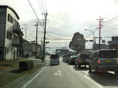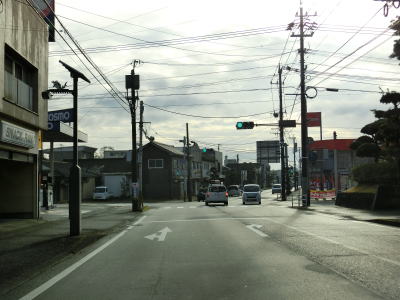 | 東上町交差点で車線が減少したはずだが、交差点の先に車線減少の警戒標識が立てられている。過去には東上町交差点から2車線とも直進できたのかもしれない。分岐したR221と並走状態であり、その間には小林競馬場跡がある。廃止になったのは1935年(昭和10年)と90年近くも前の事である。その痕跡はほとんど残っていないがヤマダ電機にかや小林保健所近くの弧状の道路はコーナーの名残と思われる。沿線に郊外型の商業施設が建ち並ぶ中を走っていると左にカーブしながら緩やかな勾配を下り、市道の金鳥居交差点を通過する。 | ||