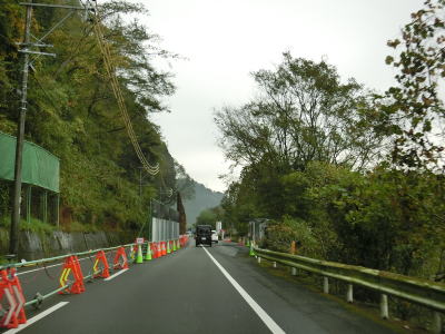 | 浦之名川の左岸を走っていると片側交互通行規制区間を通過するが、災害復旧ではなく落石を防止するための法面保護工事のためである。小さな集落を通過しながら浦之名川沿いを淡々と走る。勾配もカーブも緩やかなため非常に走りやすい。 | ||