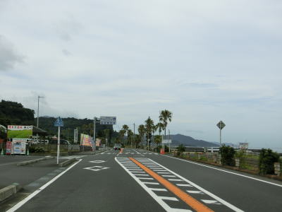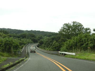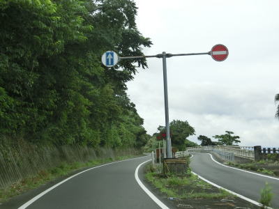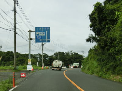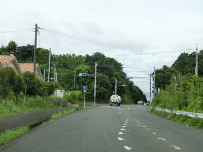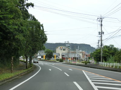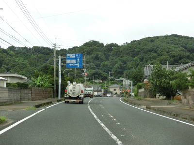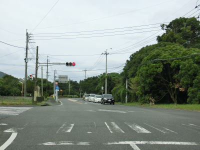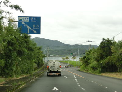 | 錦江湾に向かって緩やかな勾配を下って行く。鹿屋市の中心部からも離れており交通量は少なくなっている。市道との交差点を左折して佐多岬・錦江方面に進むが、直進の垂水・高須方面は旧道かもしれない。 | ||