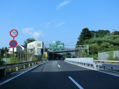 | 平塚東ICからも片側2車線という道路状況に変化はないがアップダウンが多くなる。制限速度は70km/hのままであり、片側2車線ながら高速道路のように80km/hでないのは路肩が狭いためであろう。神奈川r63の上を公所橋で通過した後に平塚本線料金所を通って厚木区間の料金を支払う。 | ||