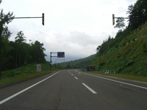 | 日東交差点左折後はR39との重複となる。二桁国道との重複となったものの道路状況はこれまでと大きく変わらない。それだけR273が整備されているという事だろう。石狩川沿いの勾配もカーブも少ない道路を走り抜ける。大雪湖に近づくにつれて勾配がきつくなるもののカーブの少ない線形のため勾配の割にはハイスピードで走ることができる。特に勾配がある区間については登坂車線も設けられている。 | ||