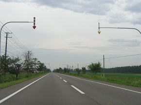 | 上士幌交差点を右斜め前方向に進むとR241とR274との重複区間となる。これ以降R273が表舞台に現れる事はなく、起点交差点までR241と重複している。十勝平野に入ったということで牧草地の間を抜ける平坦かつ直線的な道路で非常に北海道らしい風景が広がっている。7km程走って協進交差点でR274と分岐する。R273はR241と一緒に交差点を直進して南へ向かう。 | ||