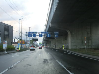 | 13.北海道r864北郷3-11・北郷3-9交差点 | 14.白石高架橋 | 15.大谷地ICの流出路が合流 |