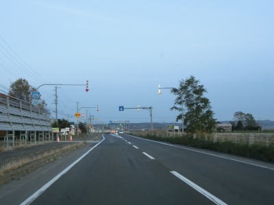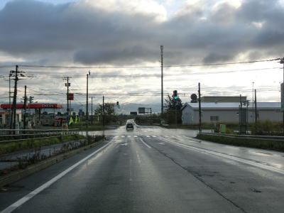 | 北海道r3との西12南6・西12南7交差点から約9.5kmでR337・北海道r45東2南7・東3南7交差点を通過する。この交差点からはR337が重複しているが、道路状況や周辺の風景に変化は見られない。 直線道路を約4.0km走ると東9南6・東9南7交差点を通過してR337の重複が終わる。交差点の手前には建設中の跨道橋があるが、これはR337のバイパスでもある道央連絡道路である。その建設に伴って交差点が少し東に移動している。移動後の交差点に長沼南ランプが接続する予定である。 |