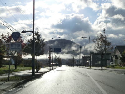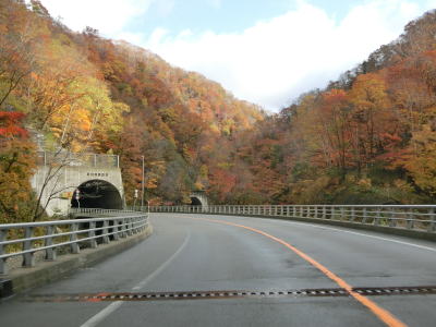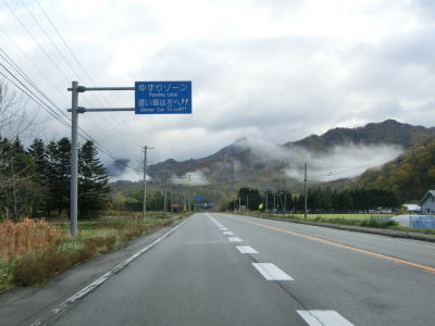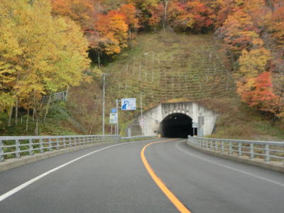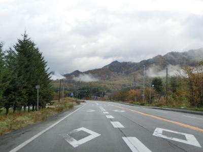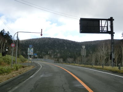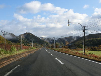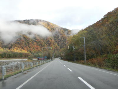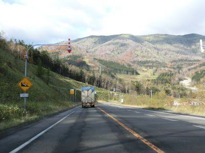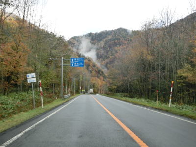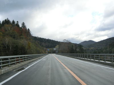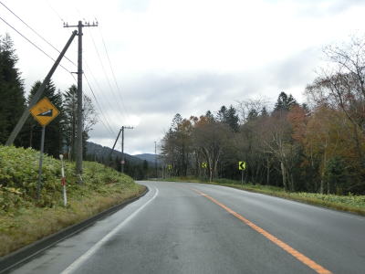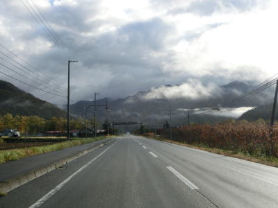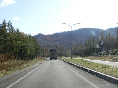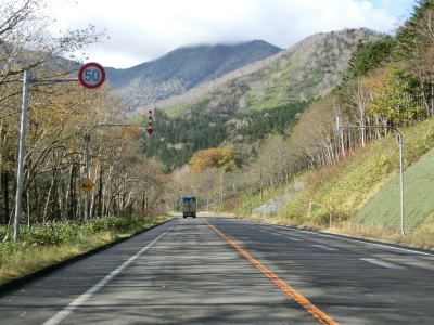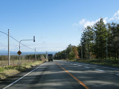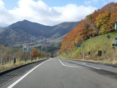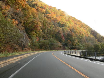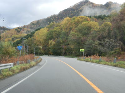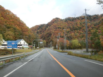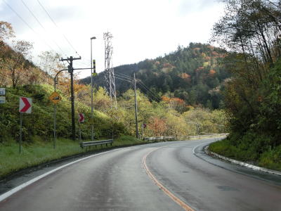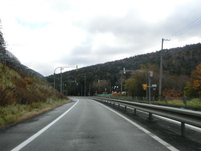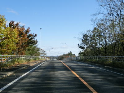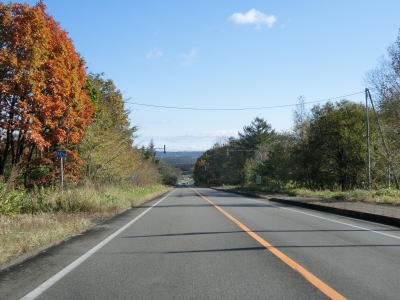 | 140.広い路側帯の2車線道路 | 141.見通しの良い直線道路が続く | 142.既に紅葉していた |