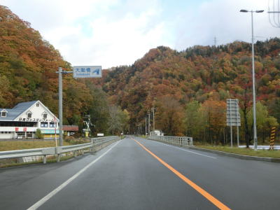 | 北海道r847交差点からも2車線道路が続いているが、路側帯が広くて走りやすい道路状況である。旧日高町の中心部を離れると周辺には家屋よりも畑の方が多くなる。右左府発電所付近からは沙流川の谷筋を走るが、勾配は緩やかなので走りやすい。 | ||