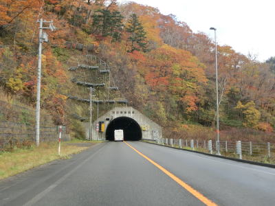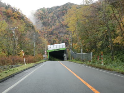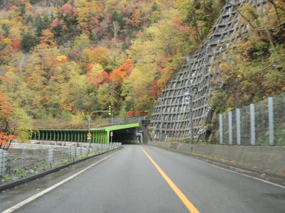 | 日勝トンネルを出て緩やかな右カーブを曲がると日勝大橋を渡って能見トンネルをくぐる。橋上から南を見ると沢沿いの斜面が崩落しているのが見える。これも2016年の台風10号によるものと思われる。能見トンネルを出ると清流覆道をくぐり、右にカーブした後に清泉覆道をくぐる。 | ||