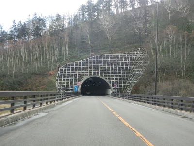 | 鹿鳴トンネルを出てすぐに新岩魚橋を渡って鹿鳴第二覆道を通過する。次にくぐるのは鹿鳴第一覆道と思ってしまうが、第一覆道は存在していない。鹿鳴トンネルや(新)清見トンネルの整備に関連して線形が改良された際に別ルートを通るようになってしまったようである。 鹿鳴第二覆道を出ると右カーブを曲がって鹿鳴橋を渡る。カーブの手前にはかなりの急カーブを想定させる標識が立てられているが、曲線半径は100mと特に急という訳ではない。その後、中の沢橋と清流橋を渡って浪ノ沢トンネルをくぐる。 |