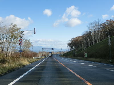 | 閉鎖用ゲートからの直線的な2車線道路を走っていると北海道r55交差点を通過する。そのすぐ先でE38道東道の本線上を通って十勝清水ICを通過する。道東道とは夕張ICで接続していたが、日勝峠付近では少し離れた北、R38の狩勝峠との間を通っている。 | ||