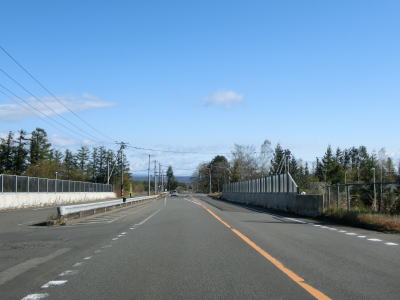 | 沙流川の右岸を淡々と走る。勾配は非常に緩やかでカーブも緩やかなものが大半であり、交通量が少ない事もあって走りやすい。直線道路を走っていると千呂露橋を渡って左カーブを曲がる。千呂露橋は2016年の台風10号によって落橋したが、2018年に復旧している。 | ||