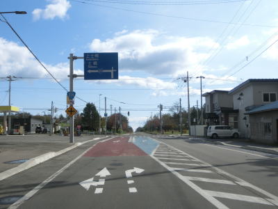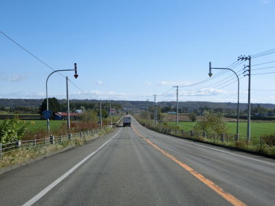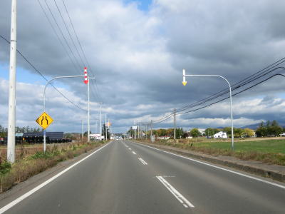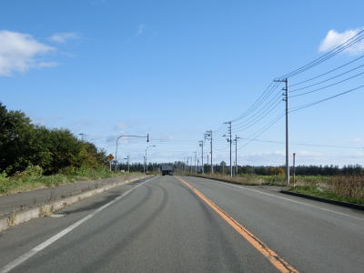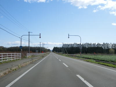 | 道の駅から程なくして北海道r133・r416交差点を通過する。町の中心部を離れて行くため徐々に沿線の家屋が少なくなっていく。平坦で見通しの良い状態だが、防風林があるため左右の風景はあまり見えない。 | ||