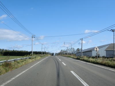 | 対面2車線道路に戻ってからも北海道らしい雄大な風景の中を走る。アップダウンは多いもののカーブは少なく、また交通量も少ないため非常に走りやすい。町境のチンネル川を渡ると鹿追町に入る。 | ||