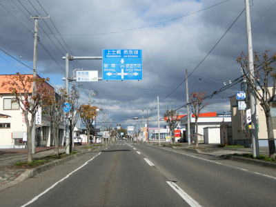 | 紅葉橋を渡り終えると大きく左にカーブして北海道r133交差点を通過する。カーブが終わって直線道路を走っていると鹿追町の市街地に差し掛かり、道の駅「しかおい」を通過する。道の駅の北隣に町役場があり、かつてはその間に北海道拓殖鉄道が敷設されていた。廃線になったのが1968年と50年以上前のためその痕跡はほとんど確認できない。 | ||