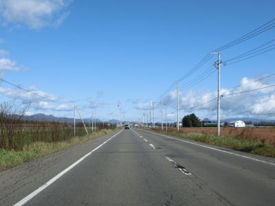 | ほぼ平坦な直線道路を北東に向かって走っていると北海道r660交差点を通過し、以降も快走路が続いている。200番台の国道同士が重複しているとは言えメインルートから外れているようで交通量は非常に少ない。 | ||