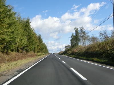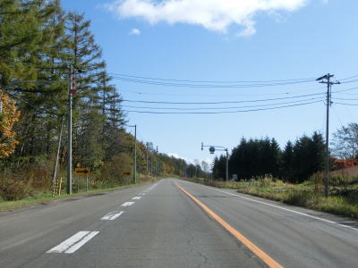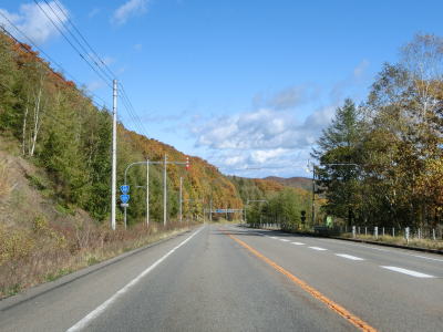 | 足寄町に入ってからも右カーブが続いており、直線道路をになると緩やかな勾配を下って行く。旧道と思われる町道との交差点を過ぎてなおも下っていると北海道r88交差点を通過する。その後は緩やかな上り勾配となるが走りやすいという点においては変化ない。 | ||