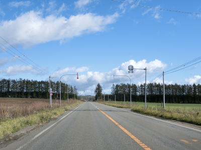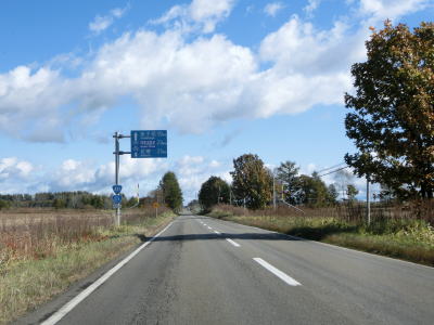 | 協進交差点からはほぼ真北の方角に向かって平坦な直線道路を走る。R241とR274の串刺しおにぎりが設置されているが、R274よりも小さい番号のR273のおにぎりは取り付けられていない。これはR273が起点まで全てR241に重複しているせいであろう。町道が交差している右カーブを過ぎて少し走ると町境を通過して上士幌町に入る。 | ||