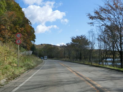 | 緩やかなアップダウンを繰り返す2車線道路を走っていると道の駅「足寄湖」を通過する。北海道内では最初に登録された道の駅のひとつだが、2019年10月の時点では売店やレストラン、チーズ工場などが休止中であり、駐車場とトイレ、自動販売機のみが利用可能である。 道の駅を過ぎてからも活込貯水池沿いが続いている。北海道r88との交差点を過ぎると左カーブを曲がって貯水池から離れる。また、このカーブから登坂車線が設置されているが、勾配は急と言える程ではない。登坂車線区間の中で町境を通過して本別町に入るが、境標識は設置されていない。 |