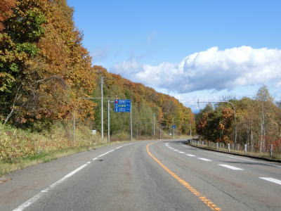 | 左カーブが始まると下り勾配となり反対側車線には登坂車線が設置されている。6%とやや急な勾配を下って右カーブを曲がると足寄町に入る。反対側車線の登坂車線は町境の上士幌町寄りから始まっている。 | ||