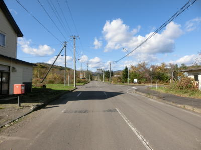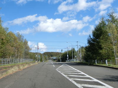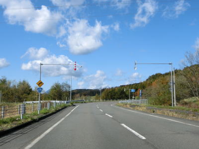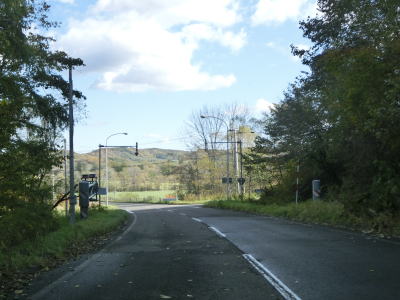 | 右に左にカーブしている下り勾配を走っていると北海道r666交差点を左にカーブしながら通過する。その後は沿線に複数の建物が見られるが、牧場関連と思われ多くの住民がいる訳ではなさそうである。 | ||