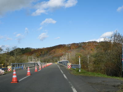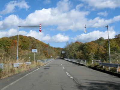 | 左カーブを曲がっていると視界が開けると同時に市道との交差点を通過する。交差点の手前に閉鎖用ゲートが設置されており、道路通行規制区間が終わる。その後はほとんど勾配のない直線道路を東に向かって走り、阿寒川に架かる中央橋を渡った後にR240徹別原野交差点を通過する。 | ||