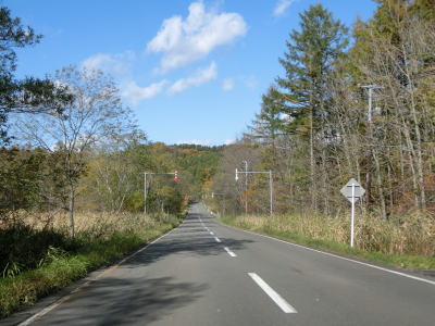 | 下久著呂方面に向かう町道との交差点以東は緩やかなアップダウンとカーブを繰り返す2車線道路が続いている。交通量は皆無と言える状態で非常に走りやすい。電光掲示板付近からは標茶市街地まで続く下り勾配が始まる。 | ||