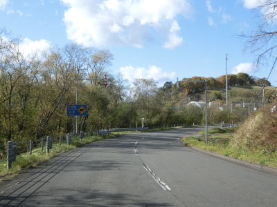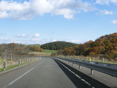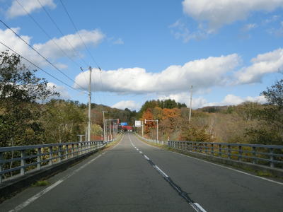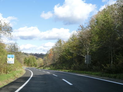 | 右にカーブして進行方角を北から東に変えた直後に峠のような場所を通ると上りから下りに転ずる。その後は緩やかな勾配を下るが、アイシナイ川を渡ると上り勾配になる。カーブは多いが走りやすく感じる。 | ||