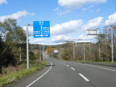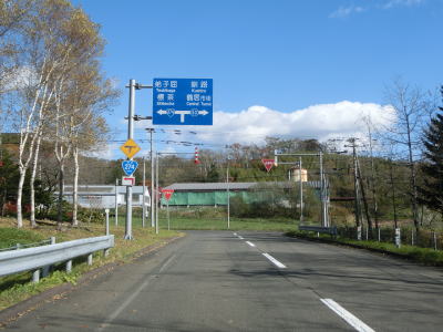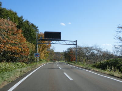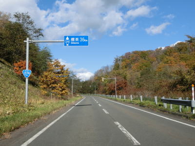 | 北海道r1052交差点のすぐ先で左カーブを曲がって非常に緩やかな勾配を上って行く。札幌(=起点)からの距離を示すキロポストがもちろん設置されているが、“366km”となっているので分断区間を含めた数字と思われる(分断区間を除くと約340kmになる)。コッタロ川付近はヘアピンカーブが連続しているおり、追越しを物理的に禁止するための中央分離帯が設置されている。 | ||