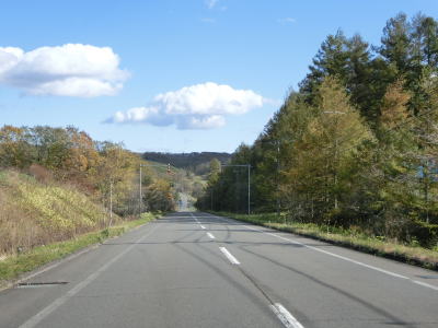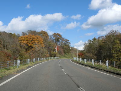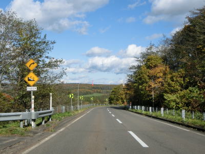 | やや急な勾配を上ってポン仁々志別川橋を渡ってからはアップダウンとカーブが多くなるが、センターライン付きの2車線道路で交通量も少ないため走りやすいと言える。下り5%勾配の区間も存在しているが、実際に走ってみるとそこまで急な勾配には思えなかった。 | ||