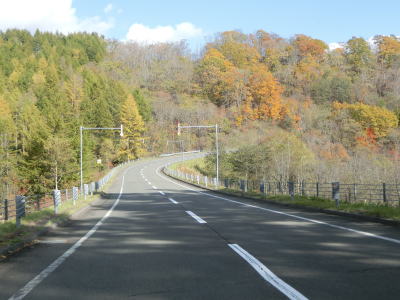 | 北海道r53交差点からは北の方角に向かって走り、支雪裡集落方面に向かう町道との交差点付近から上り勾配となる。緩やかな勾配を上っていると右にカーブして進行方角を東に転じる。カーブの直後の勾配は6%と警告されているが、道路状況が良いせいもあって走りにくさは感じない。 | ||