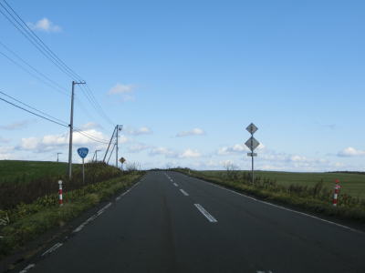 | 404.下久著呂方面は右折 | 405.直線基調の快走路 | 406.標茶市街地までの下り勾配が始まる |