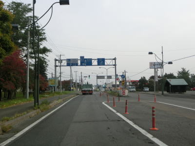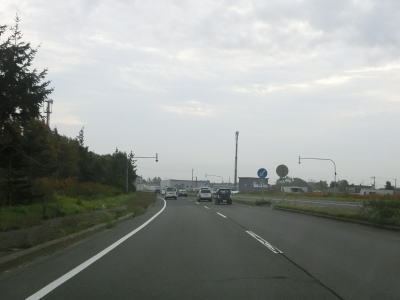 | 片側2車線道路に戻って程なくして当別町に入り、R337との交差点を通過する。立体交差化されているが通常のランプの形状とは異なり、小樽・石狩方面も長沼方面も右折する事になる。2017年3月31日以前は角山交差点からここまでの区間がR337重複区間であった。 | ||