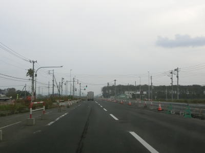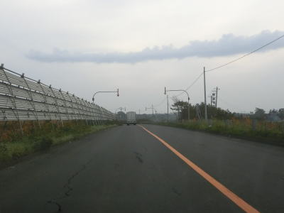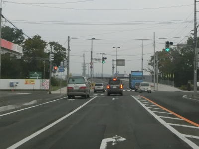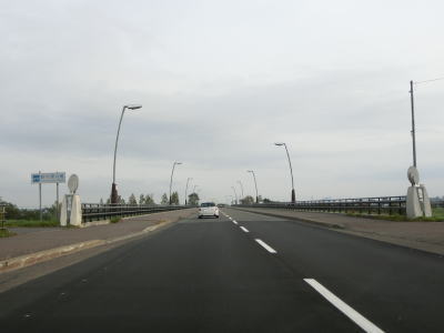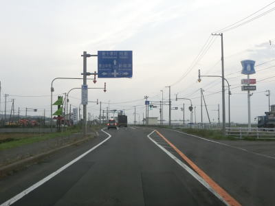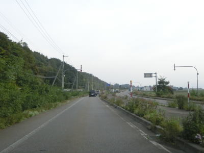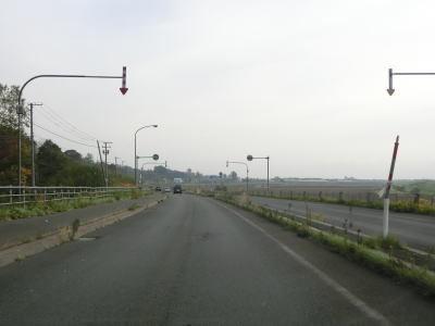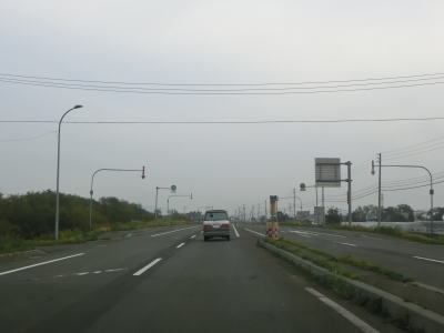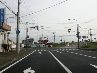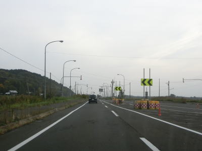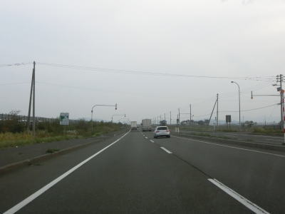 | 新石狩大橋を渡ってからも2車線道路だが、橋の直近では西側で、少し離れると東側で道路工事が行われているので橋の供用にあわせて片側2車線の区間も延伸されると思われる。そして延伸されれば既に片側2車線になっている区間と繋がるため、一気に多車線区間が増える事になる。 | ||