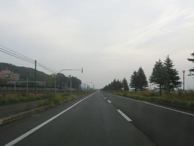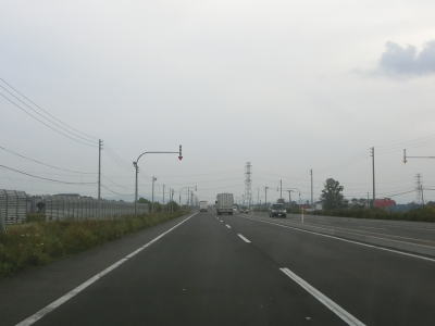 | 43.石狩川の右岸を少しだけ走る | 44.中央分離帯は追越しをさせないためか? | 45.中央分離帯区間以降は長い追越禁止区間 |