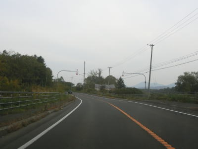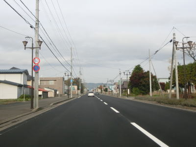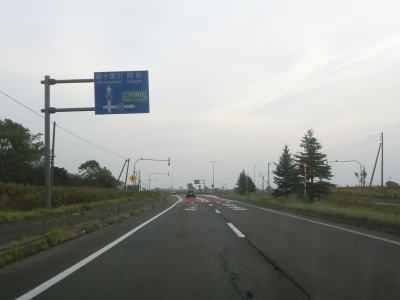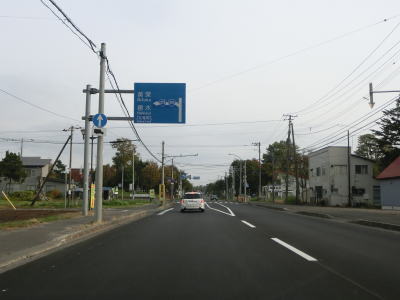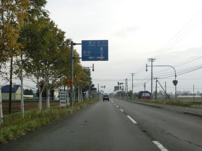 | 石狩川の右岸を少しだけ走った後に緩やかな左カーブを曲がって川から離れる。中央分離帯付きの片側1車線道路になるが、どちら側の車線にも追越車線が設置されていない事から物理的に追越しをさせないための処置かもしれない。中央分離帯がなくなってからも追越禁止規制区間が続く。 | ||