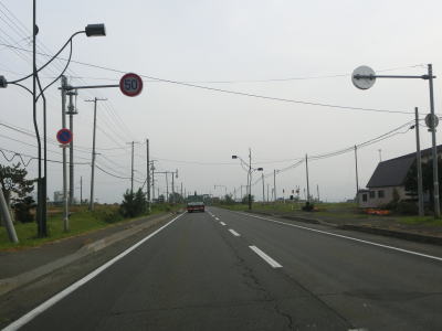 | 緩やかなカーブを繰り返す2車線道路を走っていると本中小屋駅を過ぎた辺りで追越禁止区間となる。追越禁止区間の距離は長いが、信号機付きの交差点が少なく線形も良いのでハイペースで流れている。緩やかな右カーブを曲がっていると篠津川橋を渡って月形町に入る。この境は振興局の境でもあり、札幌市を含む石狩振興局から岩見沢市を中心とする空知総合振興局の管轄地域に入る。 | ||