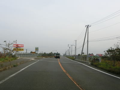 | R274も幹線国道のため右左折する車両も多く幾分か交通量は減少する。それでも早朝の割に交通量は多いままであった。丘珠空港を結ぶ北海道r1137との交差点を通過して少し走ると雁来大橋で豊平川を渡る。そのすぐ先で北海道r626東米里交差点を通過する。雁来大橋から東米里交差点の東にかけては札幌市白石区を掠めるような形で通っている。東雁来町交差点で交差している道路は北海道r814(滝野上野幌自転車道線)である。緩やかな長いカーブを曲がっているとその途中で江別市に入る。 | ||