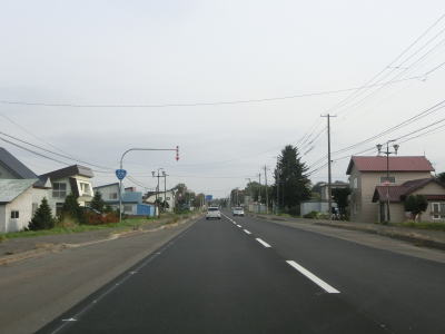 | 追越可能区間になっても道路状況や周辺の風景にはそれまでと特に変化は見れない。ハイペースで流れている2車線道路を走っていると北海道r1159晩生内駅前・晩生内228交差点を通過する。交差点の名称が示す通りすぐ近くに晩生内駅があるが、国道側からの出入はできず反対側に回らなければならない。そして、r1159は停車場線ではなく駅とは反対方向に延びている。 | ||