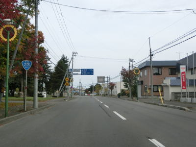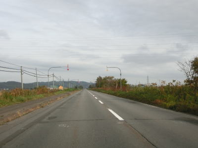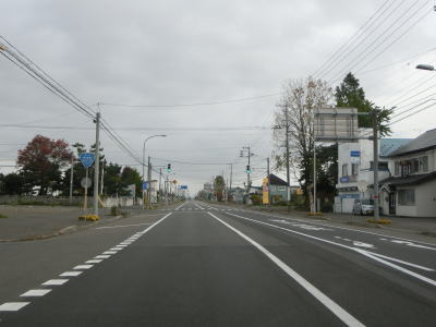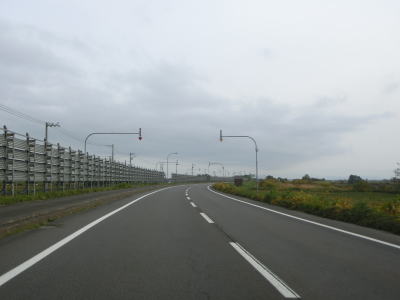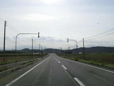 | 深川市に入ってからも平坦で幅の広い2車線道路が続いており、程なくして北海道r98・r281交差点を左折する。既に交通量は少ない状態ではあるが、これ以降はさらに少なくなる。 | ||