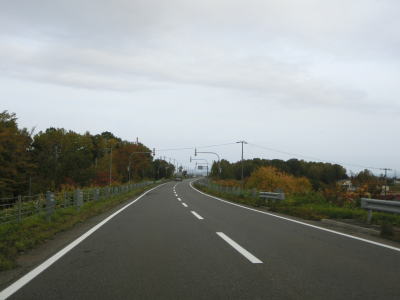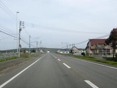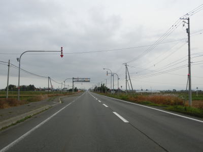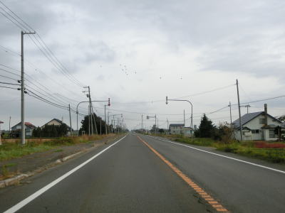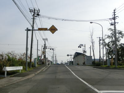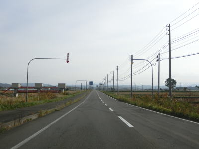 | 対面2車線道路に戻ってからも走りやすい道路状況が続いている。アップダウンはほとんどなくカーブはあるものの緩やかなものばかりである。交通量は少なくハイペースで流れている。雨竜町15区交差点から少し走った所にかつて国鉄札沼線の踏切があったが、既にその痕跡は確認できなくなっている。東側に駐車帯のある場所で交差していたようである。 | ||