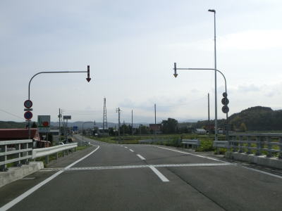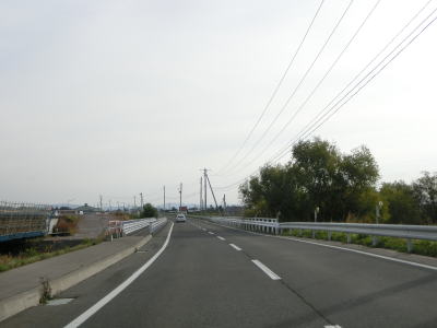 | 中央39・中央交差点を過ぎると石狩川の堤防からは離れるが、平坦でカーブの少ない2車線道路という状況は続く。寸志川橋を渡って右カーブを曲がり、直線道路を走っていると尾白利加橋を渡って雨竜町に入る。尾白利加川が町境となっているが、河川と境が合っていない場所は流路が変わったためだろう。 | ||