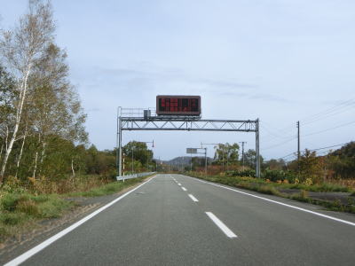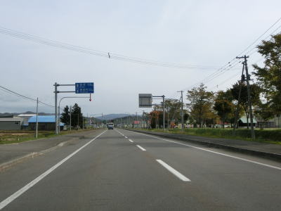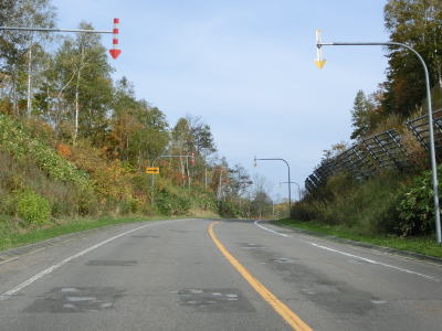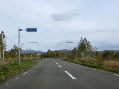| 山裾に近い平野部を走っており、周辺には蕎麦畑が広がっている。駐車帯の近くの盛土(?)の上に純白の丘というそばの花のビューポイントが設置されている。蕎麦畑の中を走っていると右カーブを曲がって新成正橋を渡り、程なくして北海道r72交差点を通過する。交差点の手前は緩やかながら上りから下りに変わる場所であり、若干ながら見通しが悪い。 | ||