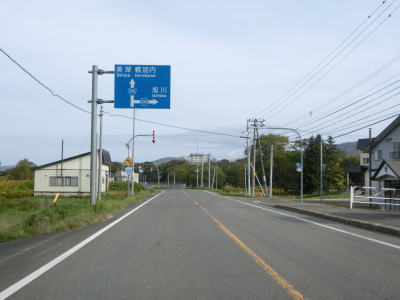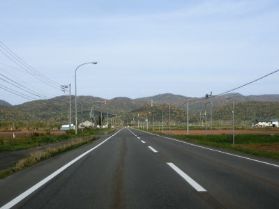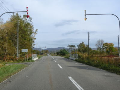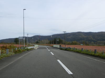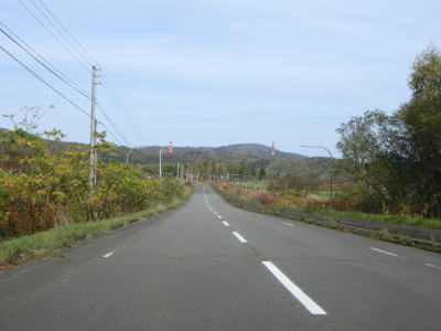 | 雨竜川の右岸の山裾に近い場所を走っていると新富駅跡を通り過ぎるが、その先に踏切があったようである。JR深名線跡と並走しながら北上を続ける。道路状況は非常によく、交通量は非常に少ないため走りやすい。 | ||