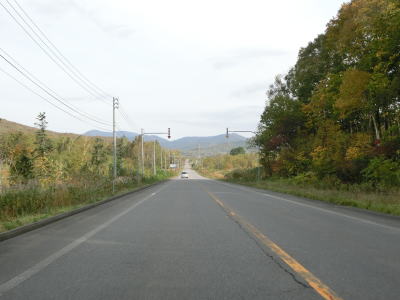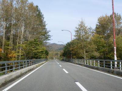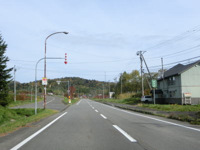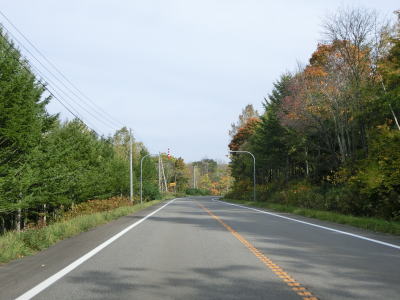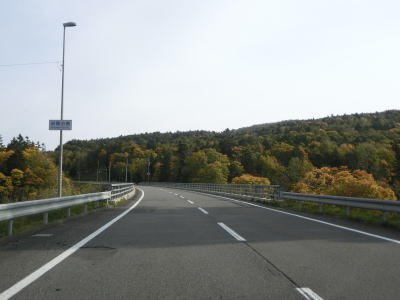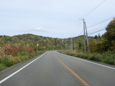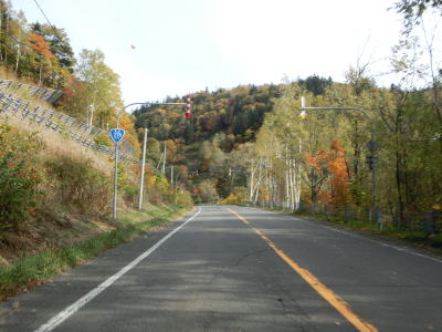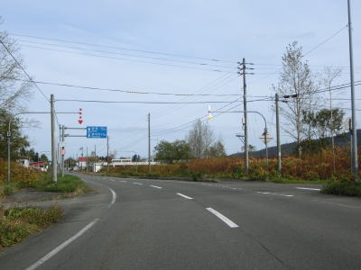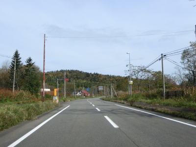 | 126.山の木々は既に色付いていた | 127.北海道r693交差点(鷹泊駅跡方面) | 128.北海道r693交差点(鷹泊ダム方面) |