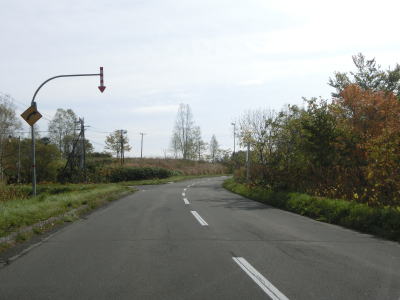 | 左カーブを曲がりながら北海道r938交差点を通過する。r938は伊分政和線という路線名だが、江別市側は共用されている区間は存在しない。政和駅跡の西を通過して北の方角に向かって走っているとやや急なS字カーブを通過する。 | ||