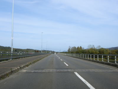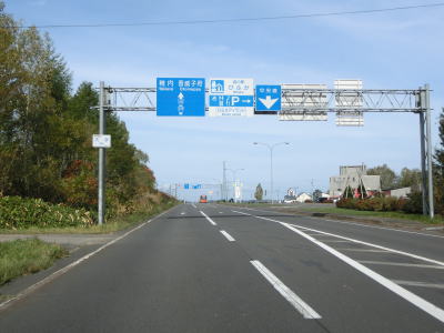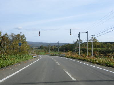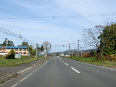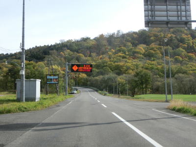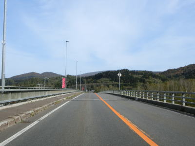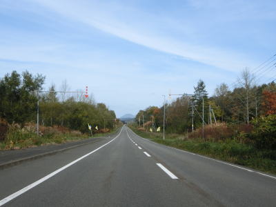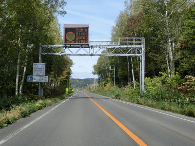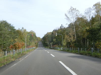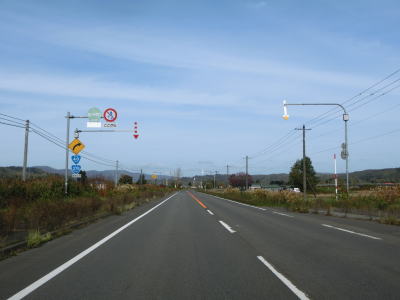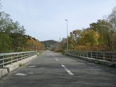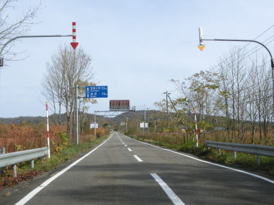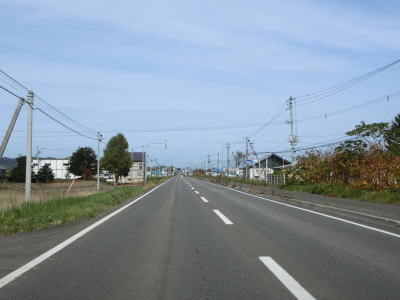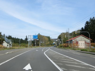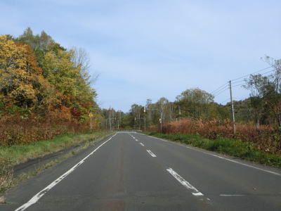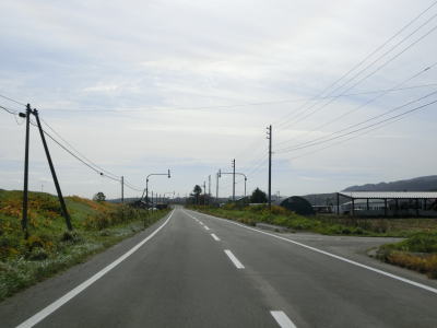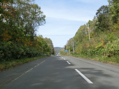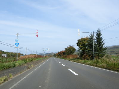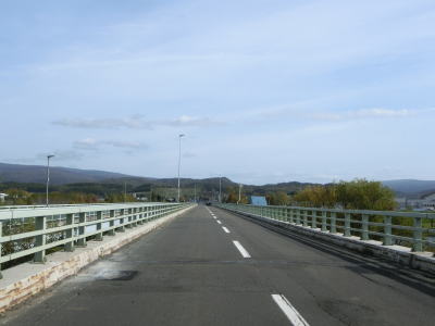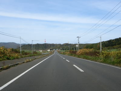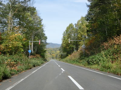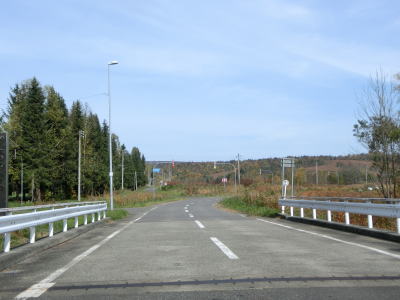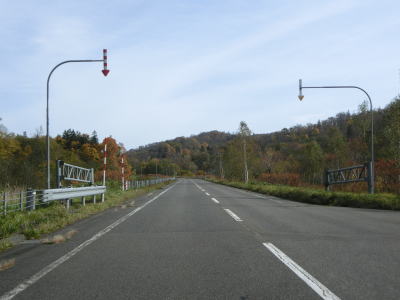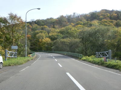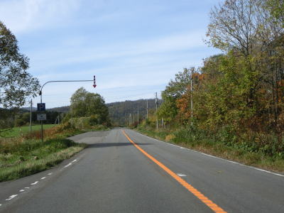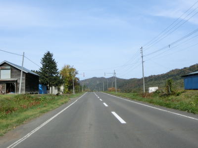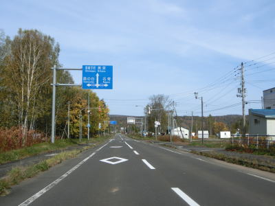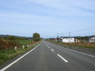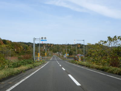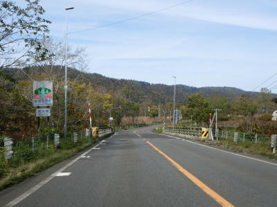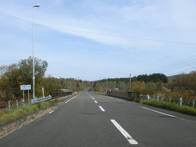 | 沿線には牧場が多く、それがこれまでと異なる点だろうか。道路状況としてはこれまでと同様に走りやすい2車線道路が続いている。やや急な右カーブを曲がって二股川を渡ってからはウルベシ川の右岸を走る。ウルベシ川から離れて進行方角を南に向けると天塩川の堤防の内側を走る。 | ||