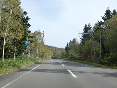 | 北海道r729との交差点を通過するが、その手前に閉鎖用のゲートが設置されているが、ここにも転回用のスペースは存在しない。その後は朱鞠内湖の東側を北上するが、湖とは距離があるため湖面は全く見えない。アップダウン、カーブともに多いが、概ね走りやすい道路状況である。 | ||