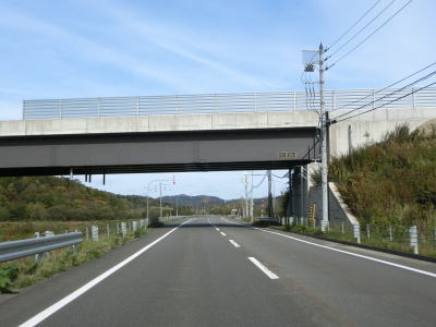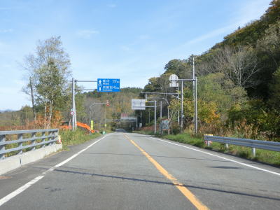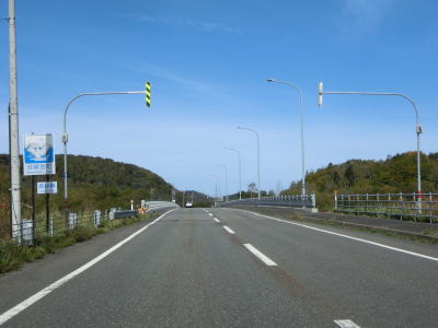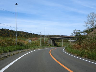 | 右カーブを曲がっているとJR宗谷本線のガードをくぐり、その先でR40音威子府バイパスの音威子府川橋をくぐる。バイパスは音威子府〜中川の区間が建設中であり、ここに(仮称)音威子府ICが接続する予定である。常盤橋を渡って音威子府川を渡り、その右岸を北に向かって走る。緩やかな上り勾配の2車線快走路であり、交通量は非常に少ない。 | ||