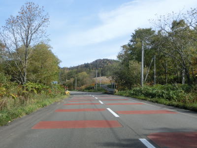 | 寿トンネルからも上り勾配が続いており、左にカーブした後に高砂橋で頓別川を渡って浜頓別町に入る。高砂橋付近のみ頓別川が町境となっている。浜頓別町に入ってからも勾配、カーブともに緩やかな2車線道路が続いている。 | ||